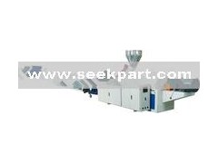 This production line consists of conical (parallel) double-screw extruder, vacuum sizing platform, tractor, cutting machine, stacker, etc. The conical (parallel) double-screw extruder and tractor adopts AC frequency control or British Euro DC speed regulator. Vacuum pump and tractor adopts high-quality products. Tractors can be divided into up and down pedrail, three-claw, four-claw, six-claw, etc. in terms of thickness and diameter of the pipe. The cutter has two modes of cutting such as blade and planet type. Additionally, metering device is equipped. The property of the production line is reliable and the output is high.